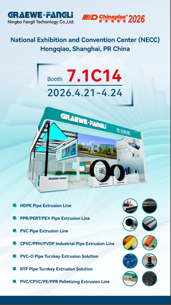 मराठी ChinaPlas 2026 এ আমাদের বুথ 7.1C14 এ স্বাগতম,নিংবো ফাংলি টেকনোলজি কোং, লি.(এরপরে "ফাংলি" হিসাবে উল্লেখ করা হয়েছে) গবেষণা ও উন্নয়ন, উৎপাদন ও বিক্রয়ে বিশেষজ্ঞপ্লাস্টিকের এক্সট্রুশন সরঞ্জাম, নতুন পরিবেশগত সুরক্ষা উত্পাদন লাইন, প্লাস্টিকের পাইপ ঢালাই যন্ত্রপাতি এবং প্লাস্টিকের সহায়ক যন্ত্রপাতি।